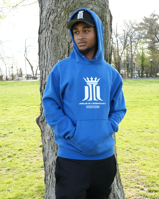 JESUS IS LEGENDARY (KING OF ALL KINGS) -ROYAL BLUE MIDWEIGHT HOODIE